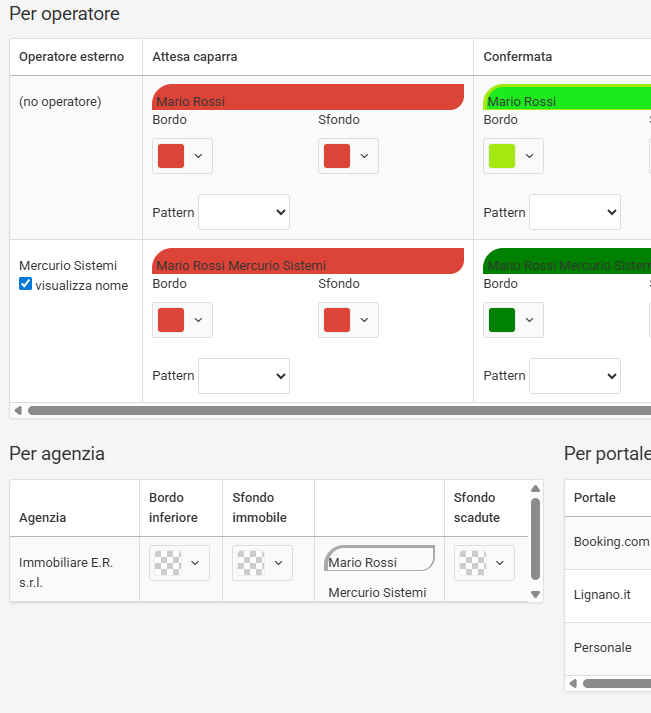 Le prenotazioni scadute possono essere assegnate un colore diverso configurando l'opzione "sfondo scadute" nella sezione Per Agenzia.