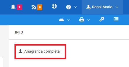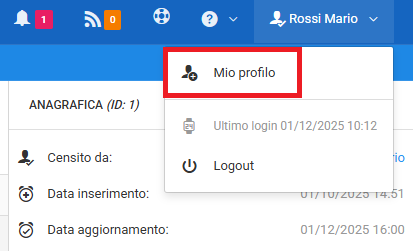 Per farlo si clicca in alto a destra sull’utente, che solitamente è un generico Mario Rossi, clic anche su Mio profilo e sempre dal menù sulla destra si seleziona Anagrafica completa.