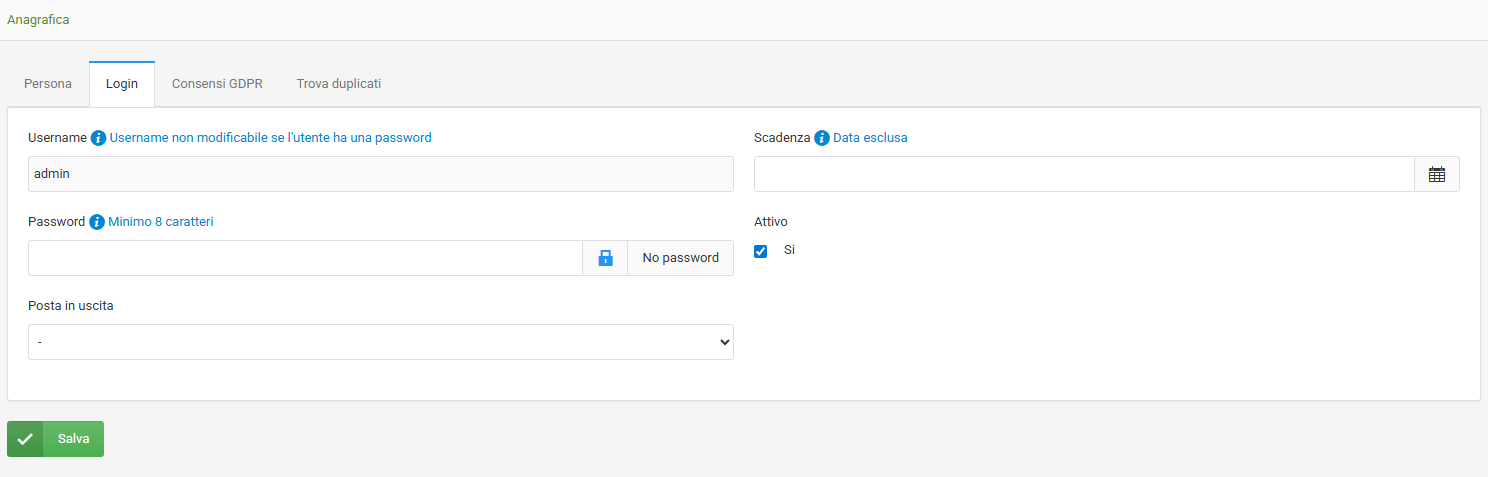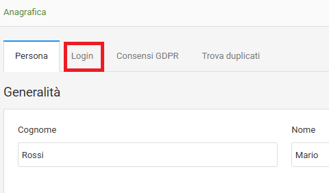 Nella sezione Login si impostano le proprie credenziali di accesso.