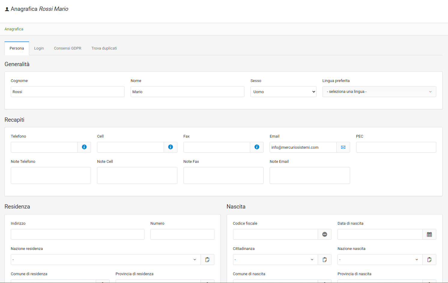 Sulla maschera principale si vanno ora ad inserire i dati anagrafici che si trovano negli appositi campi.