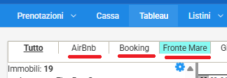Nella riga in alto si può scegliere quali tabelloni vedere. I tabelloni sono un ulteriore filtro che - una volta impostato - permette di visualizzare soltanto alcuni immobili (a scelta).