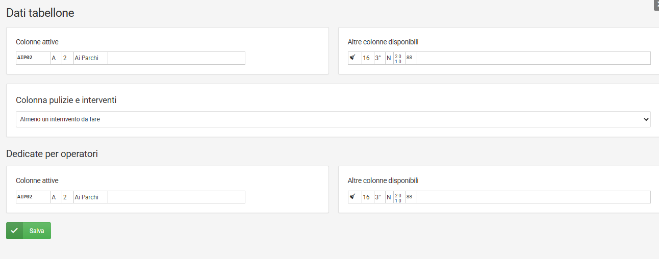 Da qui si aprirà un pop-up in cui scegliere le informazioni che si vogliono visualizzare (es. codice, tipologia, numero massimo di persone, gruppo, pulizie, numero letti, etc.). Una volta completato si salva, e le opzioni saranno impostate.
