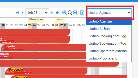 Attraverso il menù a tendina nell'angolo a destra invece si può scegliere con quale listino lavorare.