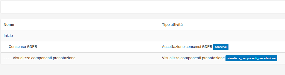 Andiamo quindi a modificare la voce Visualizza componenti prenotazione per impostarla come passaggio successivo. Una volta entrati in modifica si seleziona Consenso GDPR come Attività padre.