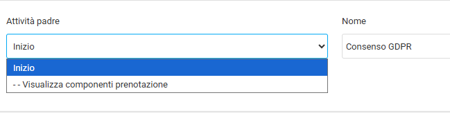 A questo punto si seleziona l'Attività da aggiungere (Accettazione consensi GDPR), e su Attività padre si sceglie Inizio, dando infine un nome all'operazione (es. Consenso GDPR).