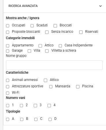 In questo caso, se si vuole per esempio cercare una disponibilità visualizzando anche gli immobili già occupati, si dovrà spuntare la casella "Occupati" nella sezione Mostra anche / Ignora.