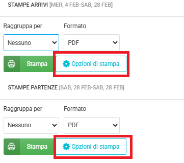 Inoltre, in queste due tipologie di stampa, è prevista la possibilità di personalizzare le colonne da visualizzare nella stampa cliccando sul tasto Opzioni di stampa.