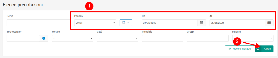 - Stampa arrivi: è l’elenco delle prenotazioni in arrivo nel periodo indicato dalla ricerca.